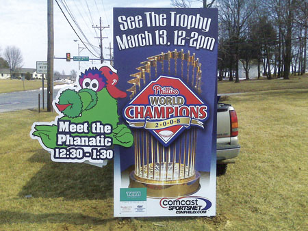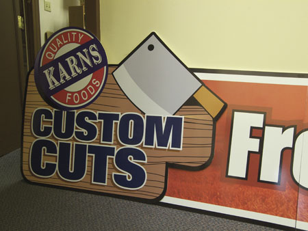 From six-feet tall ice cream cones to wearable coins and Mr. Ben Franklin himself, we have produced hundreds of custom cut images. These images are great because they add dimensionality and interest to any retail space or event. Whether mounting heavy images to a retail store wall or wearing lightweight fun sign shapes, consider the following when planning for your custom cut image:
